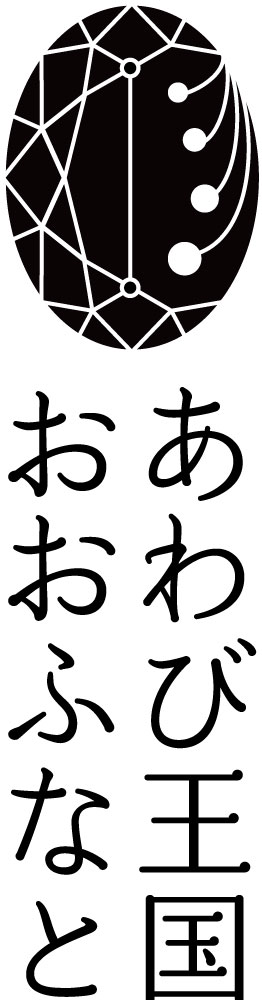 あわび王国おおふなと公式ロゴは「王国の国章・紋章」としてキャラクターデザインの一部を取り入れ、左半分はあわびの身を、右半分はあわびの殻をモチーフにしています。中央の線と穴は「吉浜乾鮑」の特徴でも糸を通す穴と糸の跡をデザインしています。キャラクターの世界観を持ち合わせながら、あらゆる場面・デザインにも活用できるロゴとして作成しました。